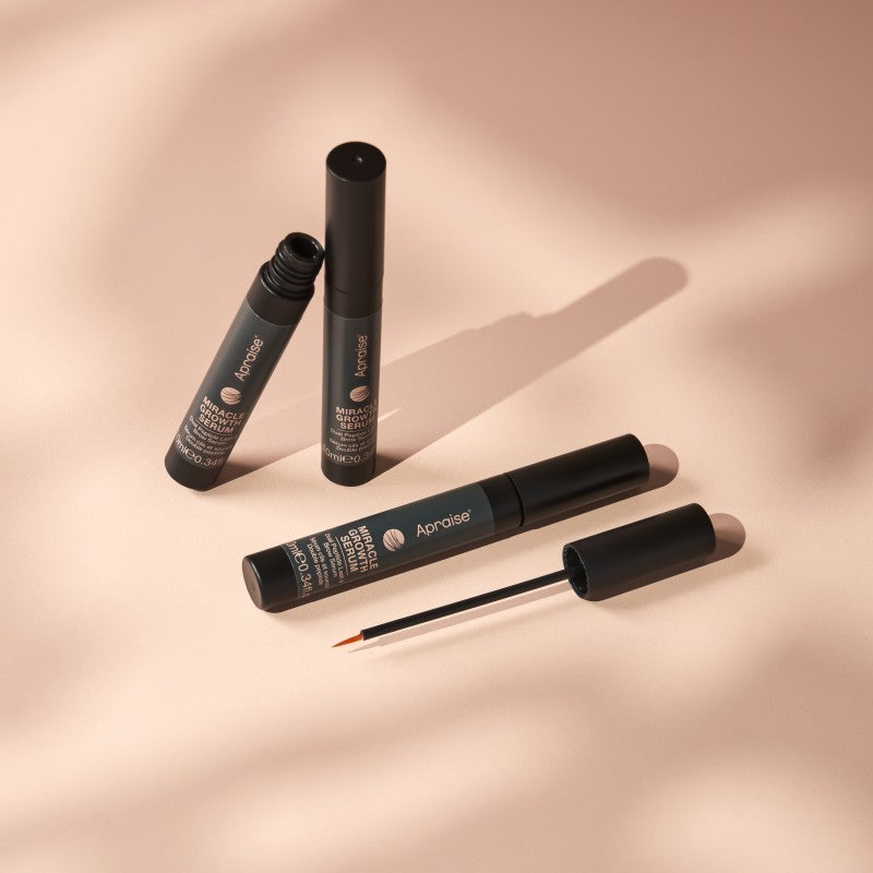 Dodaj swoim rzęsom i brwiom to, na co zasługują, dzięki Apraise® Miracle Growth Serum — głębokiej formule odżywczej opartej na zaawansowanej Technologii Podwójnego Kompleksu Peptydowego. To silne serum zostało specjalnie zaprojektowane, aby pomóc stymulować produkcję keratyny, co sprzyja widocznie dłuższym rzęsom i pełniejszym brwiom.
