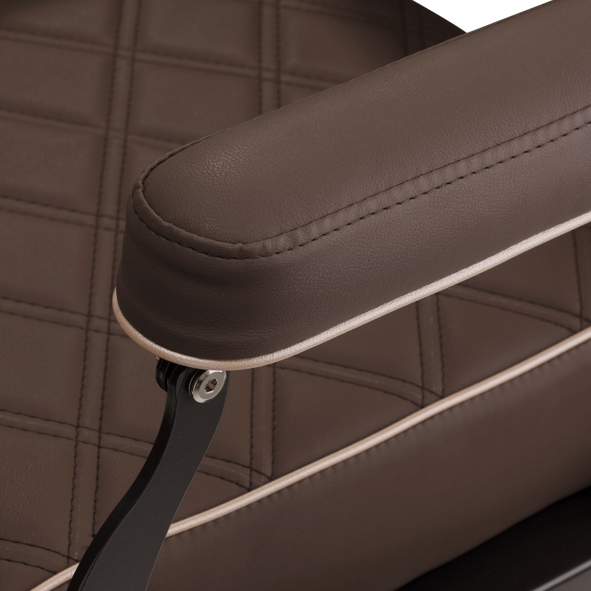Solidna konstrukcja zapewnia stabilność i wysoki komfort użytkowania. Siedzisko wypełnione jest pianką odporną na odkształcenia, a tapicerka wykonana z miękkiej, matowej skóry syntetycznej zapewnia meblowi trwałość i wygodę. Materiały odporne na wilgoć są nie tylko trwałe, ale także łatwe w czyszczeniu. Brązowy odcień tapicerki nadaje fotelowi niepowtarzalny charakter, a jego elegancki styl doskonale wpisuje się w wystrój każdego zakładu barberskiego.