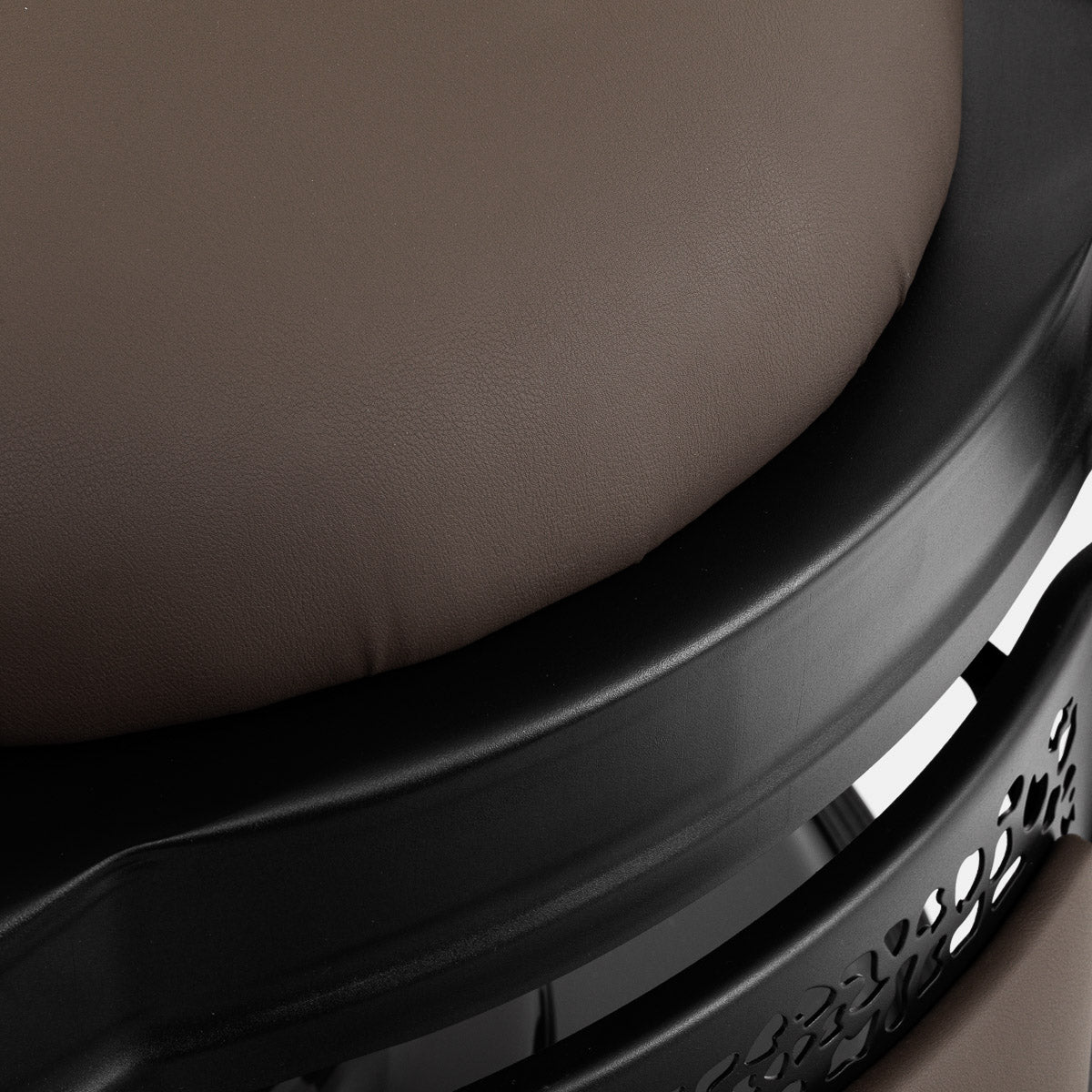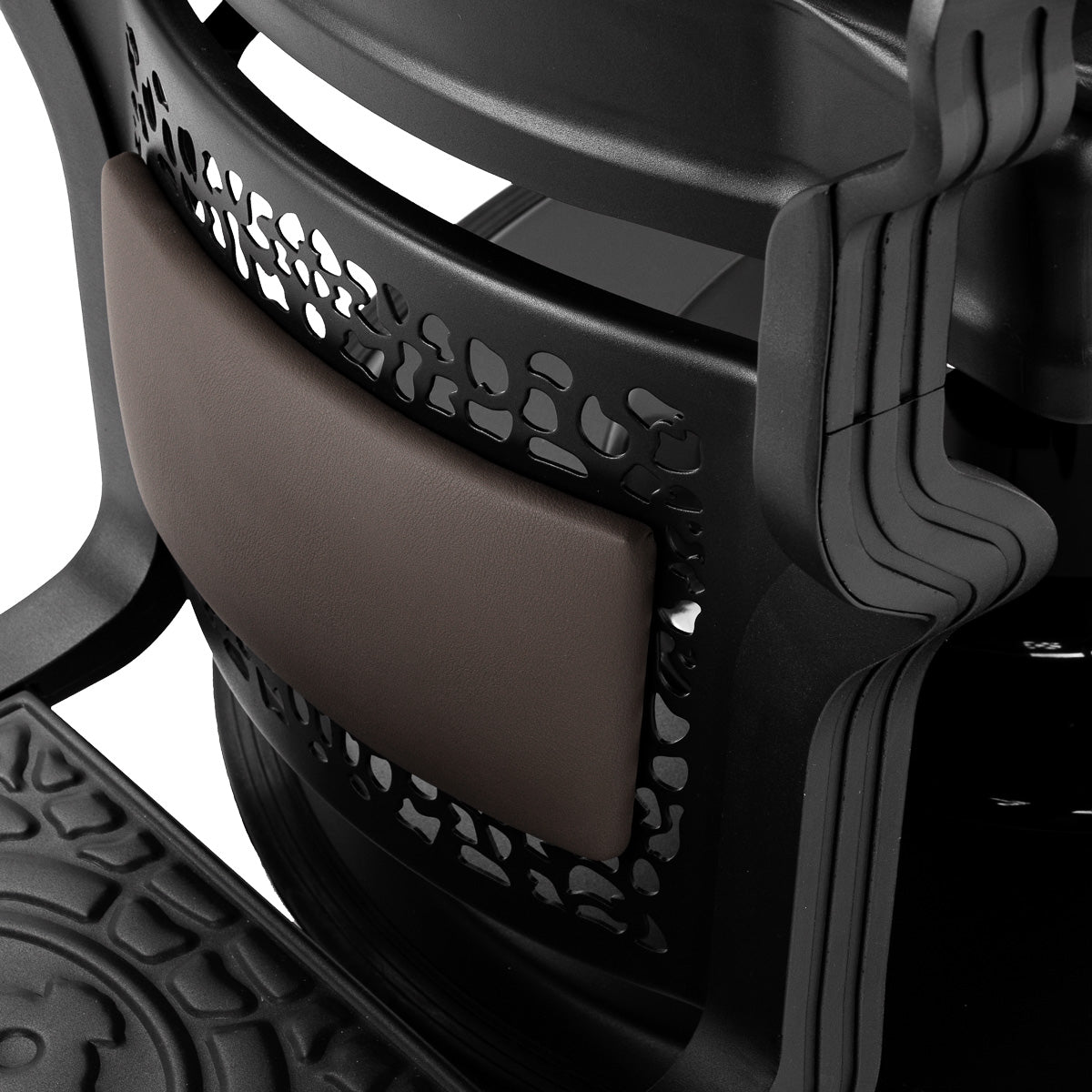 Solidna konstrukcja podstawy zapewnia stabilność i wysoki komfort użytkowania. Wypełnienie siedziska wykonane z trwałej, odpornej na odkształcenia pianki oraz tapicerka z przyjemnej w dotyku skóry syntetycznej o matowym wykończeniu gwarantują długotrwałą trwałość i komfort użytkowania mebla. Zastosowane materiały czynią wyposażenie również odporne na wilgoć, trwałe i łatwe do czyszczenia. Pokrycie w odcieniach brązu wraz z ozdobnym podnóżkiem nadaje mu niepowtarzalny charakter. Fotel, dzięki charakterystycznemu designowi nawiązującemu do stylu vintage, doskonale wpisuje się w atmosferę barber shopów, podkreślając ich wyjątkowy klimat.