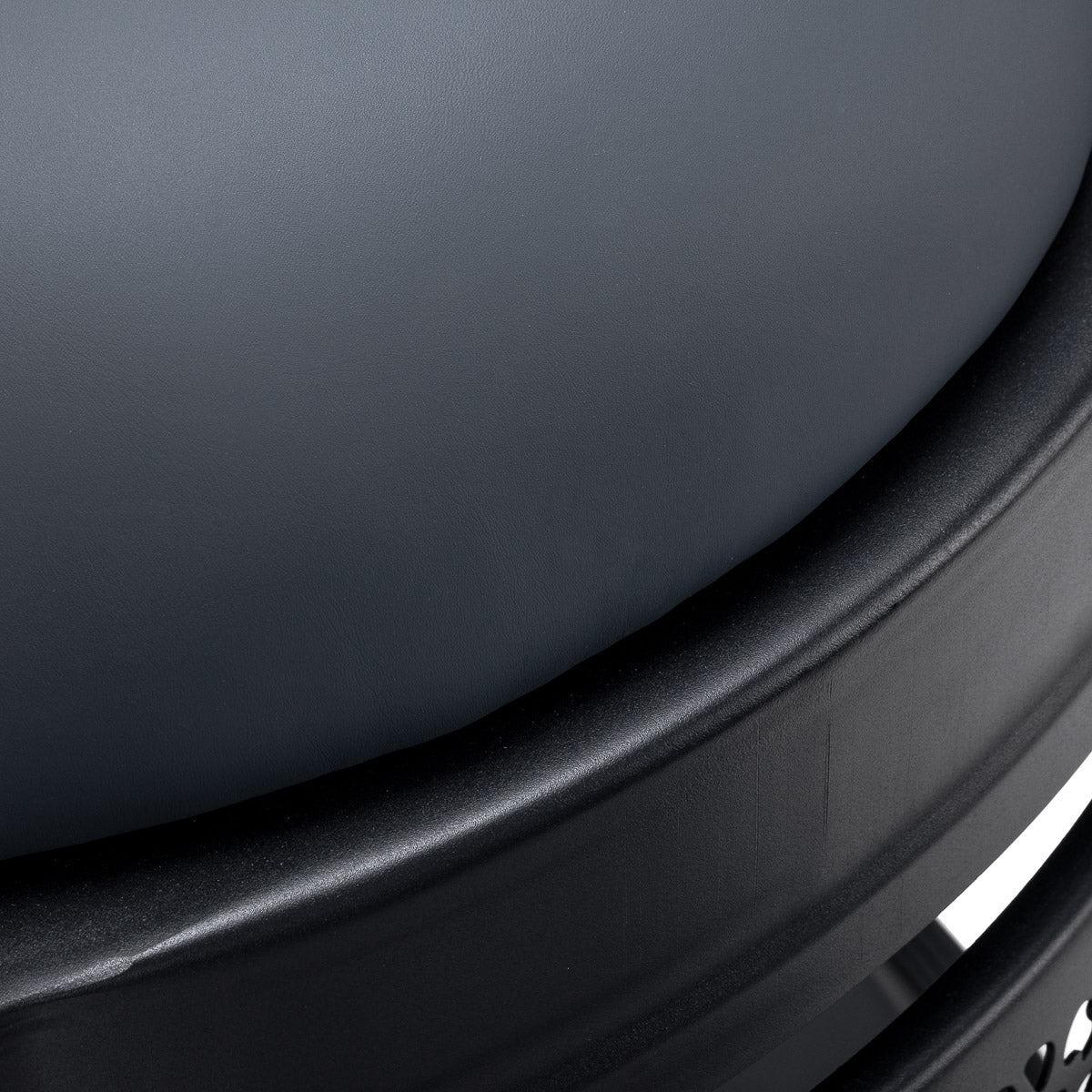 Solidna konstrukcja podstawy zapewnia stabilność i wysoki komfort użytkowania. Wypełnienie siedziska wykonane z trwałej, odpornej na odkształcenia pianki oraz tapicerka z przyjemnej w dotyku skóry syntetycznej o matowym wykończeniu gwarantują długotrwałą trwałość i komfort użytkowania mebla. Zastosowane materiały sprawiają również, że wyposażenie jest odporne na wilgoć, trwałe i łatwe do czyszczenia. Pokrycie w odcieniach grafitu wraz z ozdobnym podnóżkiem nadaje mu niepowtarzalny charakter. Fotel, dzięki charakterystycznemu designowi nawiązującemu do stylu vintage, doskonale wpisuje się w atmosferę barber shopów, podkreślając ich unikalny klimat.