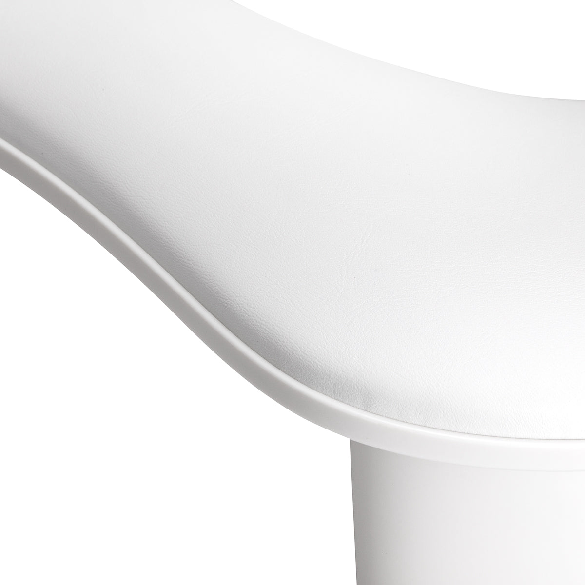 Podpórka Momo Croissant wykonana jest z wysokiej jakości materiałów, co zapewnia jej trwałość i łatwość utrzymania w czystości. Miękka poduszka pokryta ekoskórą gwarantuje klientom pełen komfort podczas zabiegu, a solidna plastikowa rama zwiększa wytrzymałość konstrukcji. Dodatkowo silikonowe elementy na nogach zapobiegają ślizganiu się podstawki i chronią górę przed zarysowaniami, zapewniając stabilność.