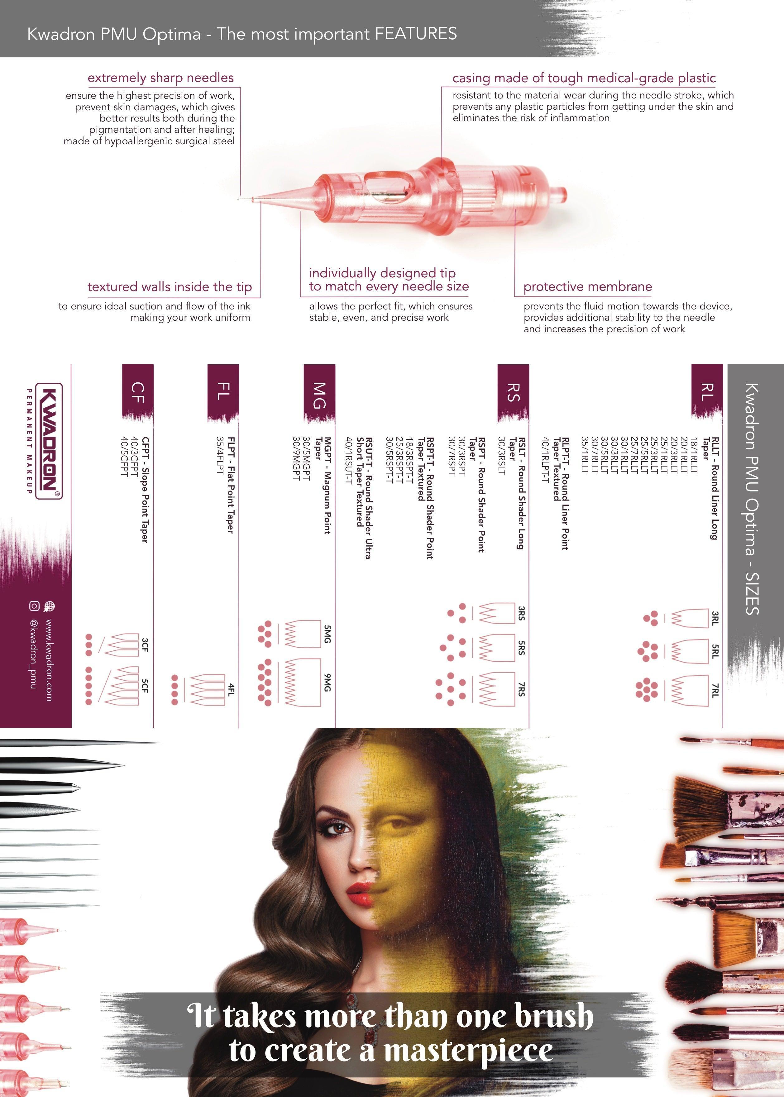 Jako lider w branży kosmetycznej z wieloletnim doświadczeniem, Kwadron zrewolucjonizował makijaż permanentny linią kartuszy Optima. Te wysokiej jakości kartusze są dedykowane artystom, pomagając im tworzyć wyjątkowe efekty bez wysiłku.