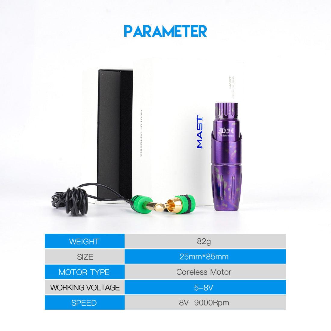 Ulepsz swoje doświadczenie w tatuowaniu dzięki Mast Tour Special Edition Rotary Pen Machine w kolorze fioletowym – lekka, wydajna i profesjonalna maszyna stworzona zarówno do użytku w studio, jak i w podróży.