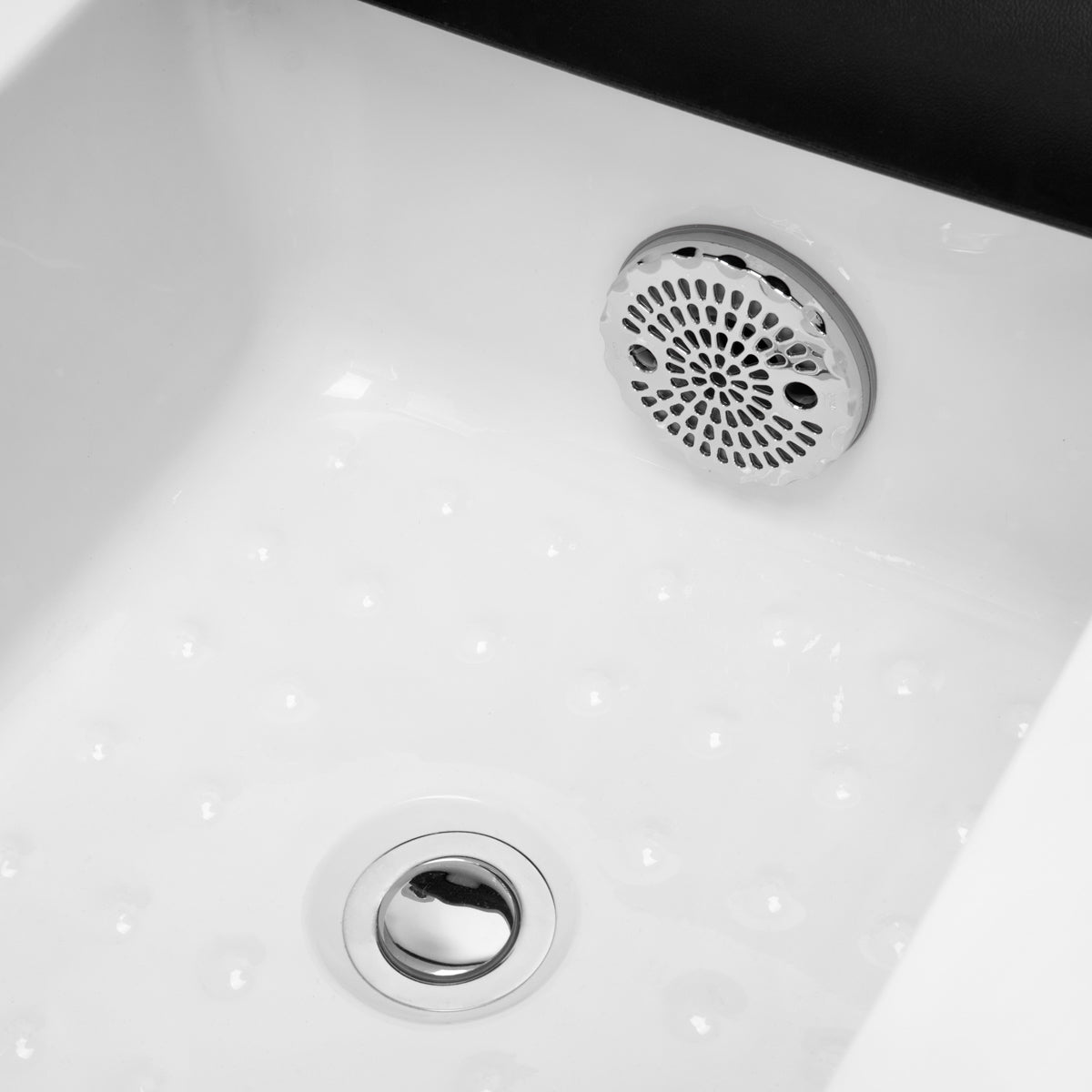 Wanna prysznicowa wyposażona jest w funkcję masażu wodnego, co sprawia, że zabieg jest przyjemniejszy i pomaga rozluźnić mięśnie oraz poprawić krążenie krwi. Hydromasaż może również pomóc zmniejszyć bóle i znacząco poprawić samopoczucie. Lampa zamontowana w wanience sprzyja tworzeniu wyjątkowej atmosfery podczas usług. Możliwość oświetlenia jej różnymi kolorami uczyni pielęgnację stóp niezwykle przyjemnym doświadczeniem. Wykonywanie zabiegów znacznie ułatwi słuchawka zamontowana przy wannie prysznicowej oraz dodatkowy kran, a także praktyczny podnóżek. Wszystkie te detale zapewnią użytkownikowi pełen relaks i pozostawią niezapomniane wspomnienia z wizyty w salonie.