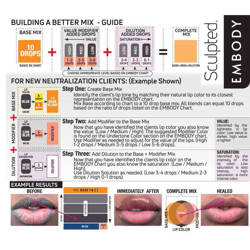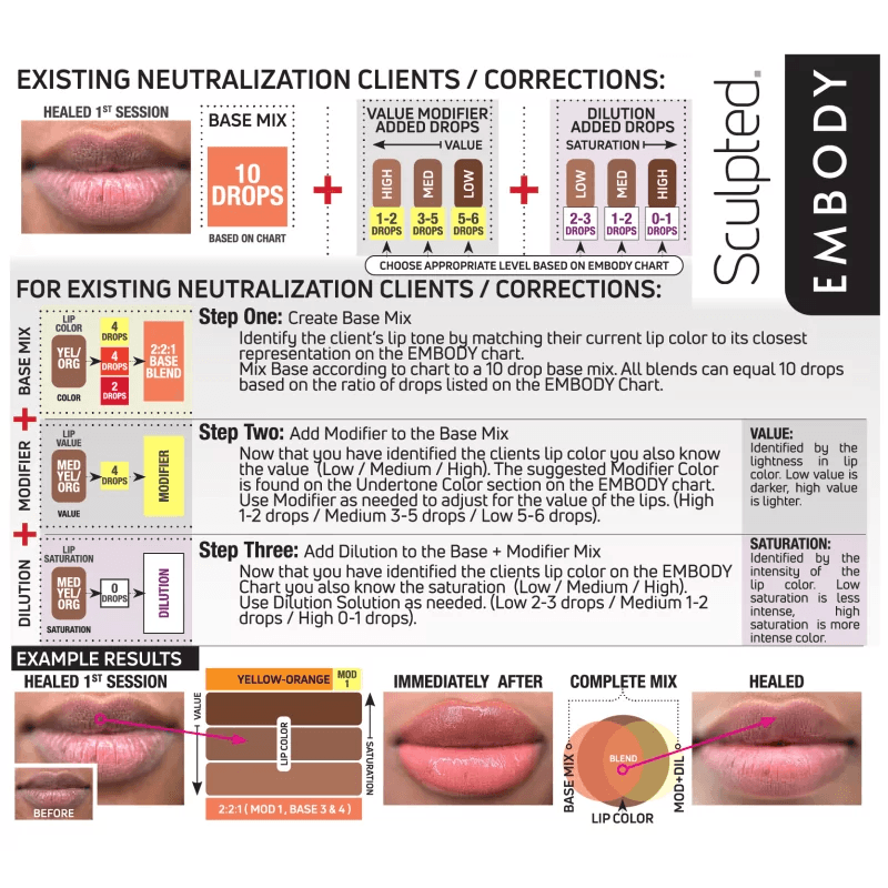 Embody Set autorstwa renomowanej właścicielki Sculpted Studio, Carly Ricciardone. Ta wyjątkowa kolekcja ośmiu tuszy do makijażu permanentnego została specjalnie zaprojektowana dla chłodnych i ciemnych tonów ust, umożliwiając płynne łączenie z naturalną tkanką oraz lepszą neutralizację.