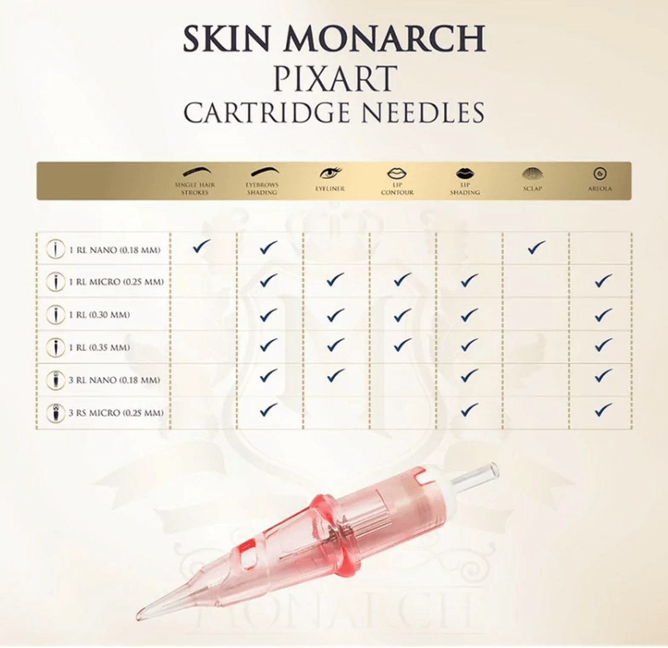 Skin Monarch PixArt Kartridże to szczyt jakości i wydajności w świecie makijażu permanentnego. Jako zarejestrowany znak towarowy uznany za doskonałość od 2011 roku, Skin Monarch poświęcił lata na pozyskiwanie najlepszych produktów dla profesjonalistów, współpracując z czołowymi światowymi markami w branży. Wiedza zdobyta przez lata zaowocowała stworzeniem marki Skin Monarch — nazwy, której możesz zaufać, jeśli chodzi o najwyższą jakość.