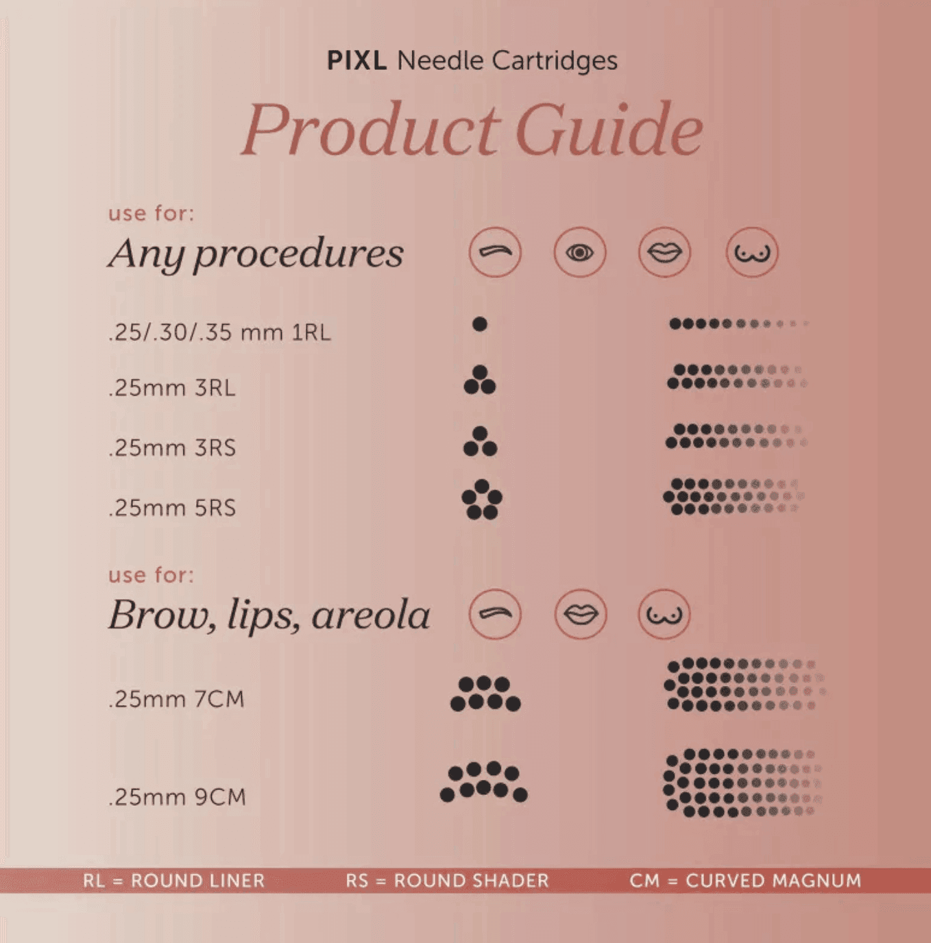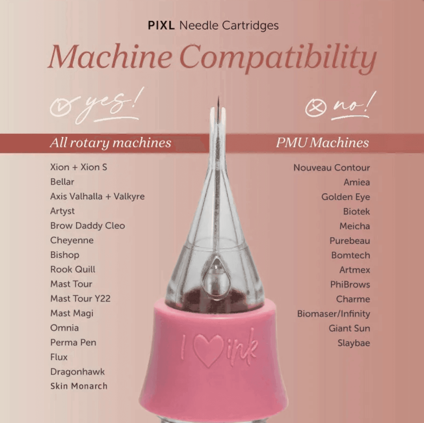 • Wszechstronny wybór igieł: Kartridże PIXL dostępne są w różnych konfiguracjach, co pozwala wybrać idealną igłę w zależności od osobistych preferencji, stanu skóry i wymagań projektu. Ta elastyczność zapewnia minimalizację urazu skóry klienta przy jednoczesnym osiągnięciu pożądanych rezultatów.