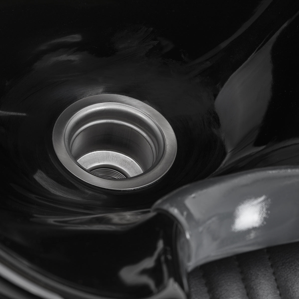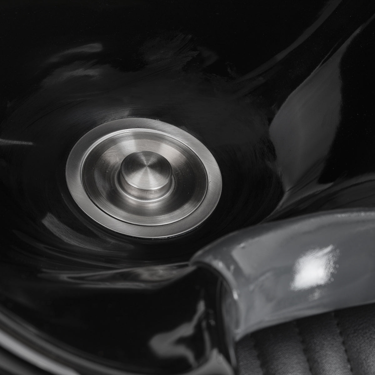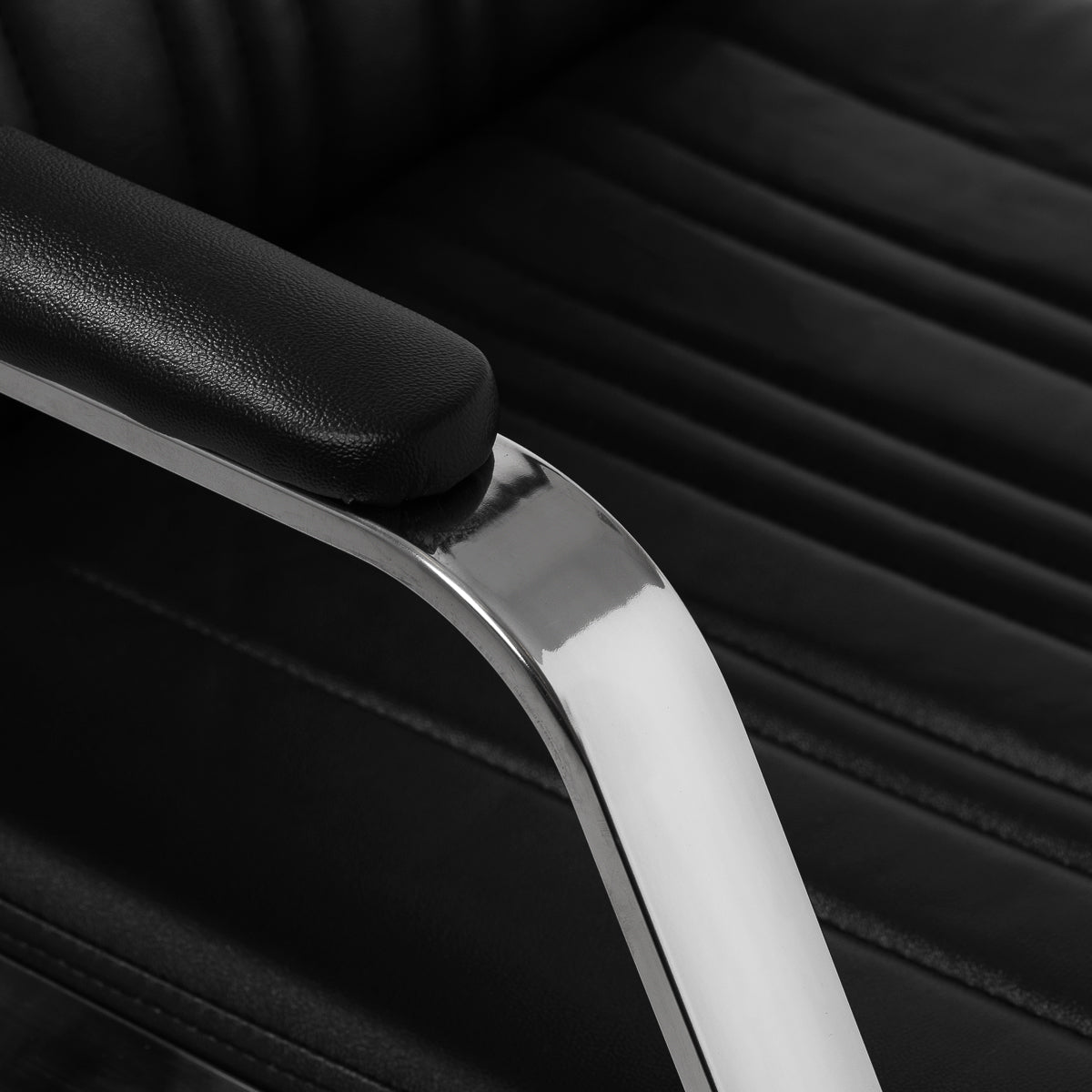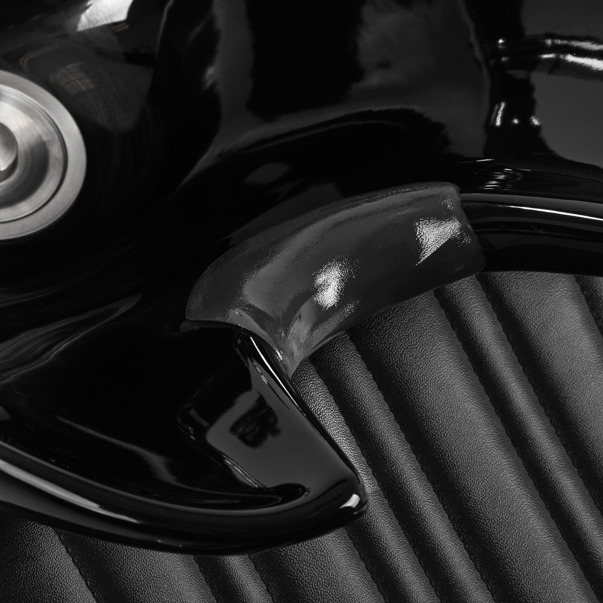 Profilowane siedzisko, wypełnione trwałą pianką, zapewnia wygodę, natomiast tapicerowane podłokietniki ułatwiają prawidłowe ułożenie ramion klienta. Oparcie umieszczone pod optymalnym kątem sprzyja doskonałemu podparciu kręgosłupa. Pokrycie ze skóry syntetycznej w odcieniach czerni gwarantuje długotrwałą trwałość i łatwość czyszczenia. Stylowe przeszycia na tapicerce nadają myjni charakter inspirowany designem motoryzacyjnym, podkreślając jej imponujący wygląd wizualny. Wyposażona jest w kompletne okucia w chromowanych i czarnych tonacjach, w tym baterię, słuchawkę prysznicową oraz dedykowane węże, aby zapewnić pełen zestaw narzędzi do pracy.