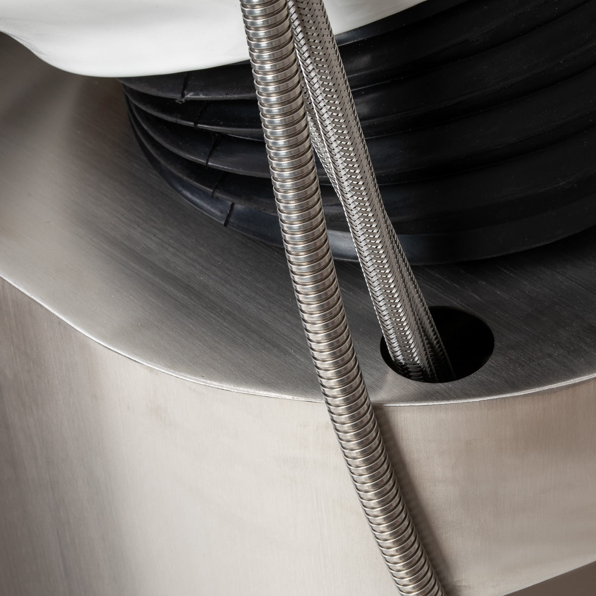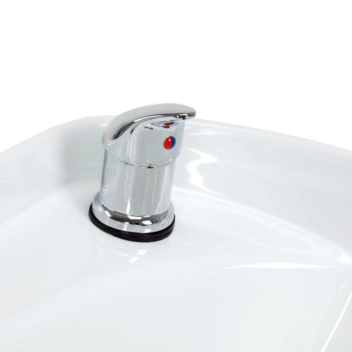 Głębokość ceramicznej misy myjącej w odcieniach bieli pozwala na komfortowe i efektywne wykonywanie szerokiego zakresu usług fryzjerskich, zapobiegając nadmiernemu rozpryskiwaniu wody i produktów używanych podczas zabiegu. Użyty materiał sprawia, że misa jest trwała, odporna na odbarwienia i zarysowania, a także bardzo łatwa do utrzymania w czystości. Odpowiednio profilowany kołnierz oraz pochylone oparcie zapewniają wsparcie i komfort podczas mycia włosów, a dzięki wygodnej plastikowej nakładce w odcieniach czerni klient nie odczuje dyskomfortu z powodu zimnej powierzchni ceramiki.