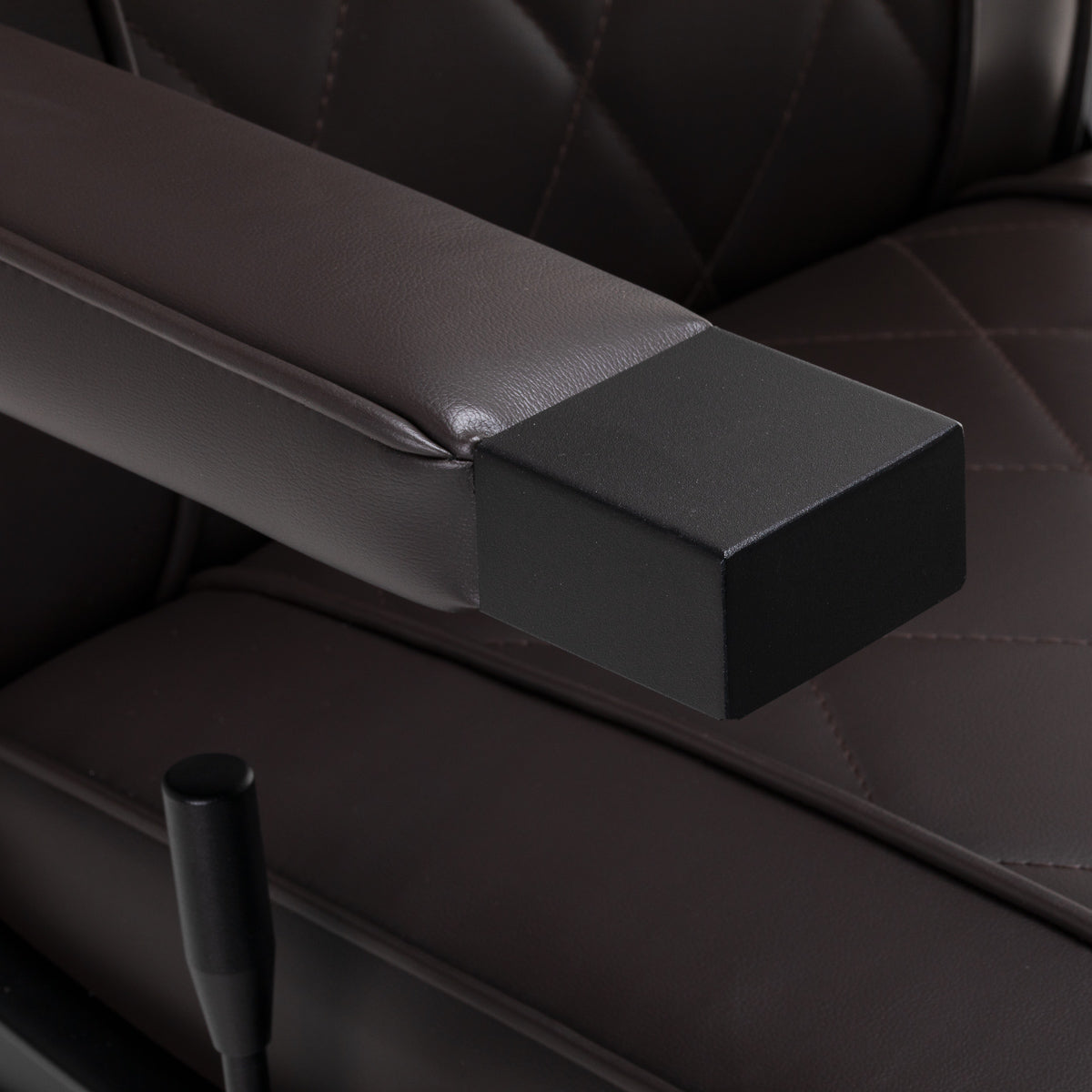 Solidna konstrukcja okrągłej podstawy fotela zapewnia stabilność i doskonały komfort użytkowania. Wypełnienie siedziska wykonane z pianki odpornej na odkształcenia oraz tapicerka z miękkiej w dotyku skóry syntetycznej o matowym wykończeniu gwarantują trwałość i wygodę podczas długotrwałego użytkowania. Stylowe przeszycia na tapicerce dodają charakteru, nawiązując do motoryzacyjnych inspiracji, które podkreślają elegancki wygląd. Ta cecha sprawia również, że fotel jest odporny na wilgoć, trwały i łatwy do czyszczenia. Tapicerka w odcieniach brązu nadaje fotelowi niepowtarzalny charakter, a jego minimalistyczny styl pozwala na harmonijne wkomponowanie się w wystrój każdego barber shopu.