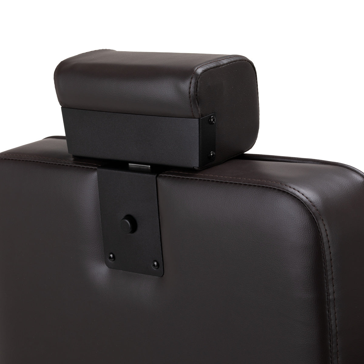 Sprawny podnośnik hydrauliczny umożliwia swobodną regulację wysokości siedziska w zakresie 55-68 cm, nawet gdy klient siedzi. Ta funkcja gwarantuje ergonomiczną pracę i ułatwia dopasowanie poziomu siedziska do wzrostu zarówno klienta, jak i osoby wykonującej usługę. Fotel posiada odchylane oparcie oraz regulowany podnóżek, co pozwala na umieszczenie klienta w wygodnej pozycji półleżącej. Takie ustawienie zapewnia lepszy dostęp podczas niektórych zabiegów. Dodatkowo 20 cm wysuwany zagłówek zapewnia doskonałe podparcie głowy.