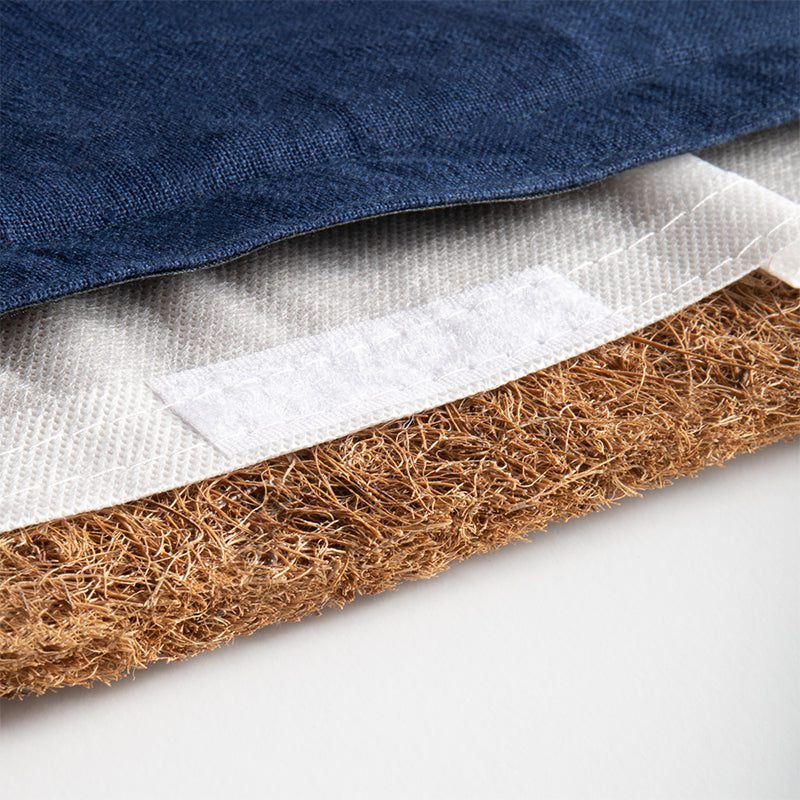 Mata wykonana jest z wysokiej jakości materiałów, wszystkie użyte elementy są antyalergiczne. Pokrowiec maty wykonany jest z wysokiej jakości 100% naturalnego lnu, wewnątrz maty znajduje się gruba wkładka z naturalnego włókna kokosowego, dzięki czemu mata jest naturalna i ekologiczna. Włókno jest lateksowane, więc nie wchłania wilgoci, a wkład pozostaje higieniczny.