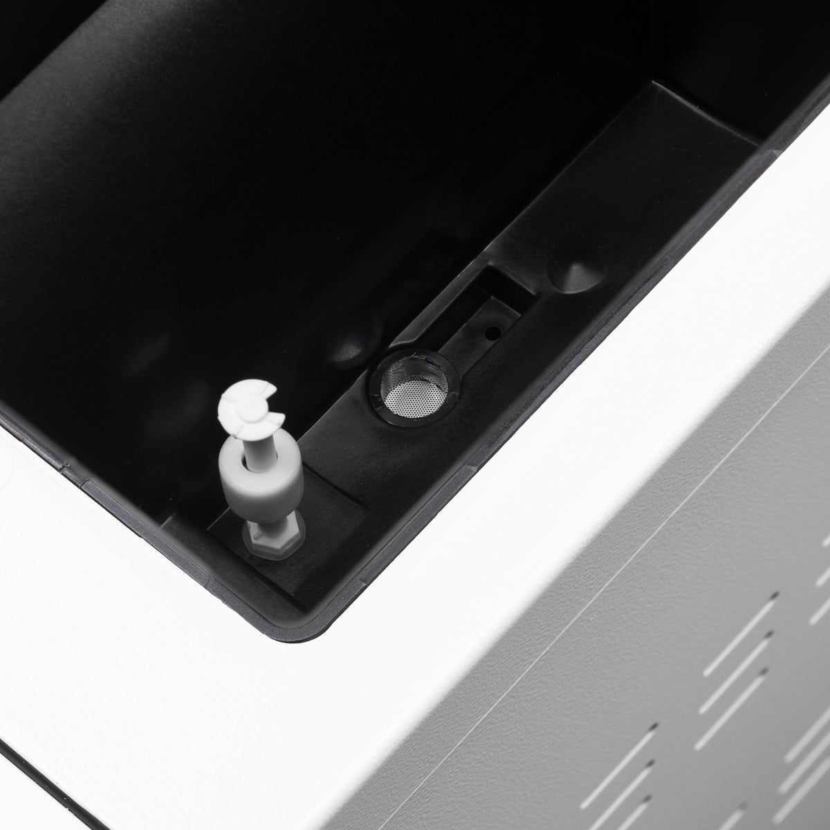 | Wbudowane zbiorniki na czystą i zużytą wodę | Zbiornik na czystą wodę przeznaczony jest na wodę destylowaną lub dejonizowaną do sterylizacji. Obecność zbiornika na wodę zużytą oznacza, że nie musimy pamiętać o zewnętrznym pojemniku. Odpływ wody zużytej (i czystej) znajduje się z przodu urządzenia. |