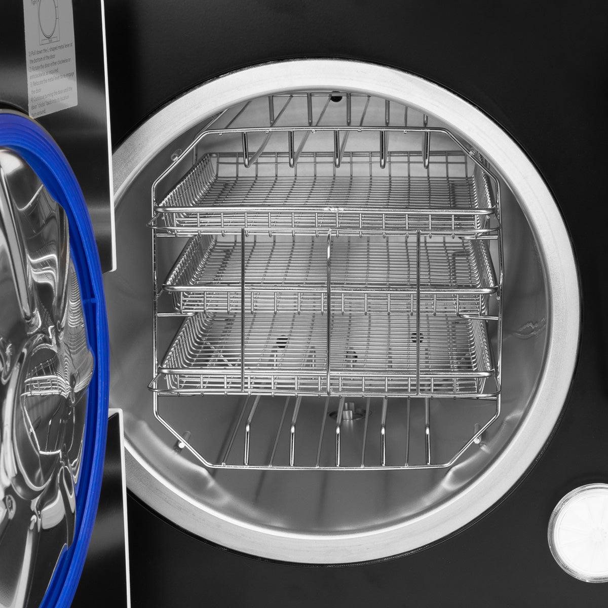 | Pojemność 23 L | Duża pojemność pozwala na sterylizację większej liczby narzędzi i przedmiotów. Idealny do gabinetu dentystycznego, placówek uniwersyteckich, oddziałów szpitalnych lub prywatnej kliniki. |