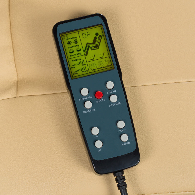 Pozycja fotela jest regulowana elektrycznie za pomocą pilota (pochylenie/przód/tył oraz oparcie).