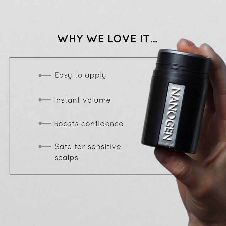 Dostępne w 10 naturalnych odcieniach, włókna Nanogen idealnie łączą się z Twoimi włosami, tworząc niewidoczny efekt. Są dermatologicznie testowane, bezpieczne dla wrażliwej skóry głowy, nie zatykają porów i nie zakłócają działania preparatów miejscowych, takich jak Minoksydyl.