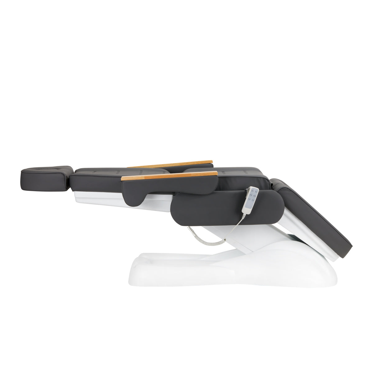 Za pomocą intuicyjnego pilota fotel można płynnie regulować w trzech płaszczyznach – posiada regulowaną wysokość oraz kąty oparcia i podnóżka. Pozwala to na dowolne ustawienie pozycji zgodnie z wykonywanym w danym momencie zabiegiem, co wpływa zarówno na komfort użytkownika, jak i wykonującego zabieg.