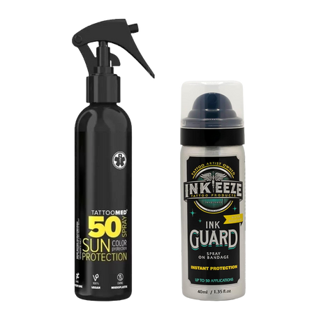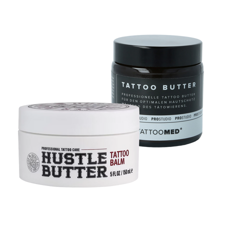 Asortyment może obejmować kremy, balsamy, spraye, pianki, środki oczyszczające oraz preparaty ochronne dobrane tak, aby pomagać utrzymać komfort skóry, higienę i jej stan po wykonaniu tatuażu. Produkty są wybierane zgodnie z profesjonalnymi protokołami pielęgnacji po zabiegowej oraz zaleceniami tatuatorów.
