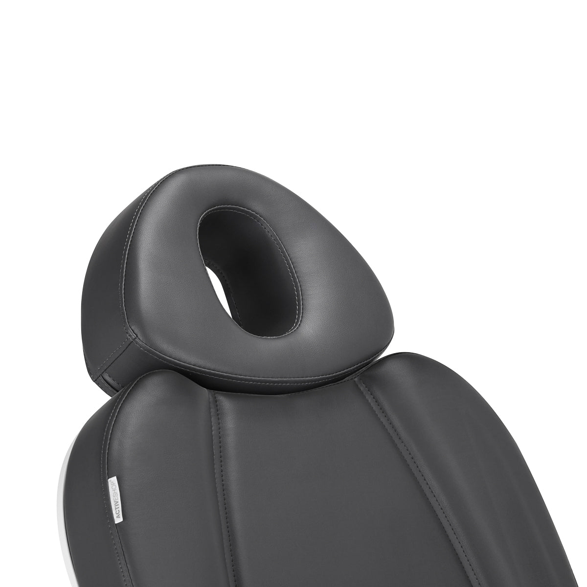 Otwór w zagłówku jest idealny do zabiegów, podczas których klient jest ułożony twarzą w dół (np. masaże). W zestawie znajduje się pokrowiec na otwór w zagłówku oraz wygodna poduszka, które ułatwiają przeprowadzanie szerokiego zakresu zabiegów zarówno na twarz, jak i ciało. Podłokietniki są ruchome, można je ustawić w pozycji pionowej lub obrócić o 180º, a także łatwo zdjąć, co ułatwia bezpośredni dostęp do klienta.