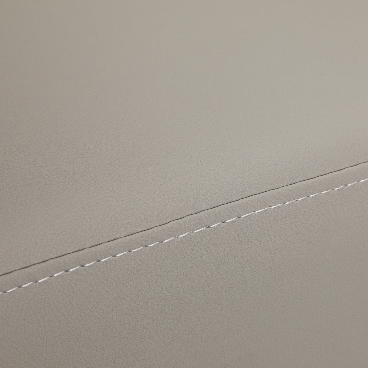 Wygodny fotel wypełniony jest trwałą i odporną na odkształcenia pianką, co zapewnia długotrwałe użytkowanie, wysoki komfort i wygodę nawet podczas wielogodzinnych zabiegów. Tapicerka wykonana jest z przyjemnej w dotyku skóry syntetycznej, a zastosowanie takiego materiału sprawia, że wyposażenie jest odporne na wilgoć, trwałe i bardzo łatwe do czyszczenia. Pokrycie w odcieniach szarości wraz z wizualnie interesującymi elementami nadaje mu unikalny charakter. Wyposażenie wyróżnia się eleganckim designem, dzięki czemu fotel świetnie prezentuje się w wielu wnętrzach salonów fryzjerskich.