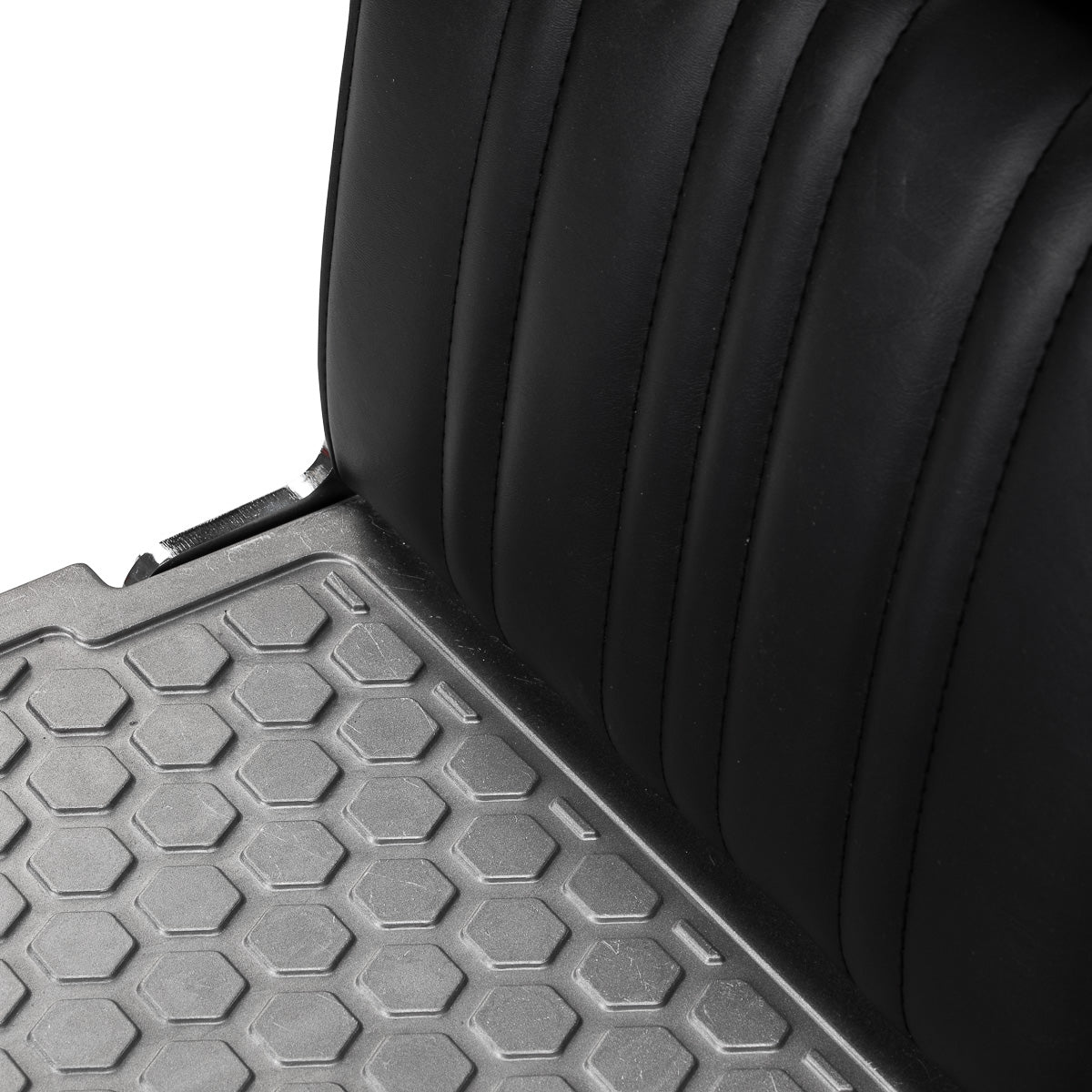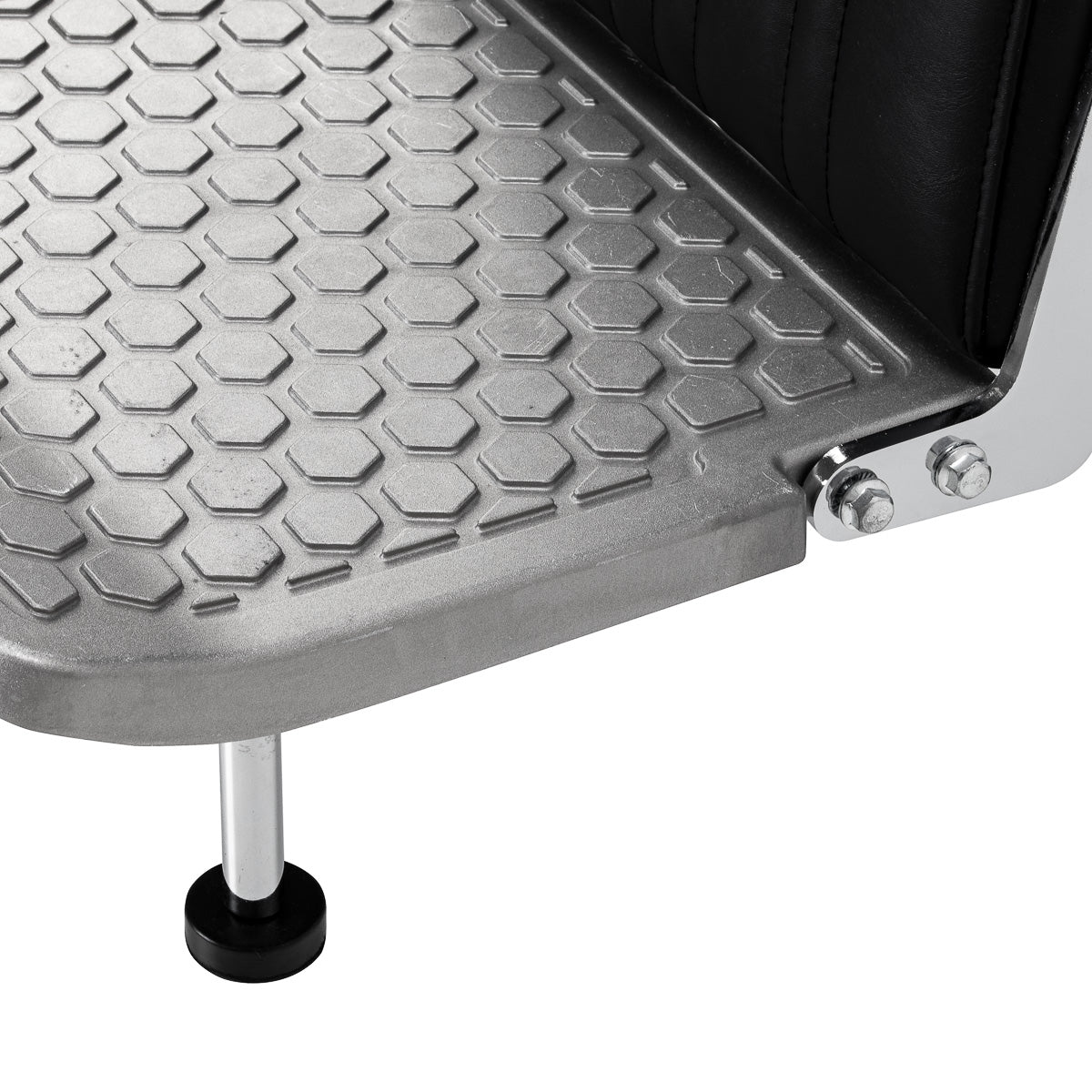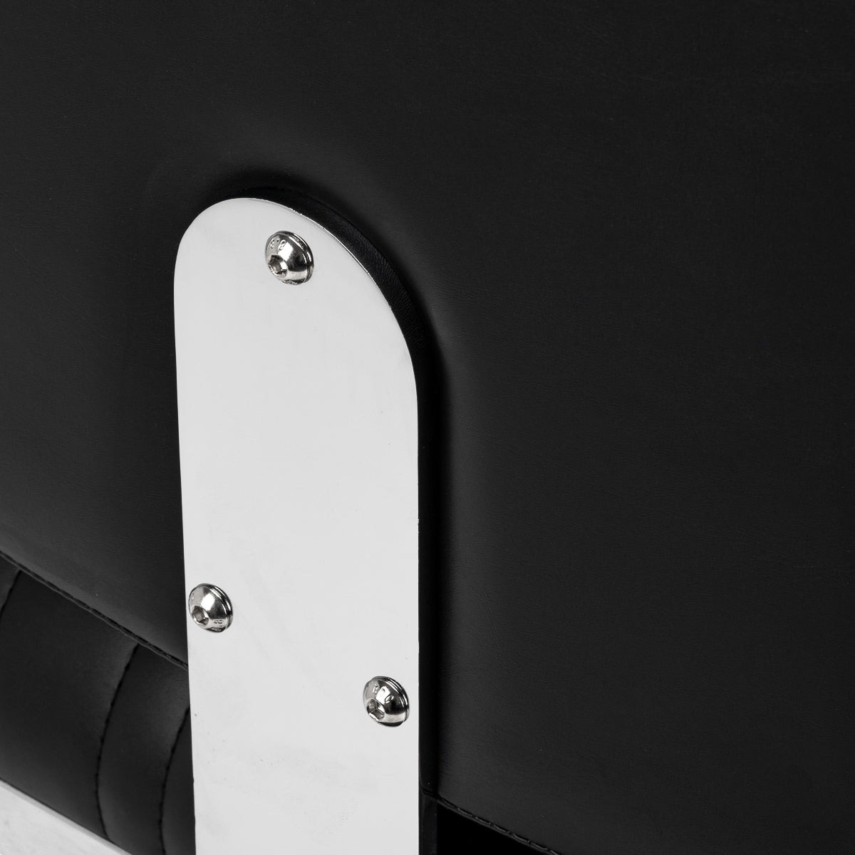 The stable base provides secure support and high comfort of use. The seat is filled with deformation-resistant foam and upholstered with semi-matt synthetic leather, guaranteeing durability and comfort for a long time. The materials are distinguished by their resistance to moisture and ease of cleaning. The black upholstery combined with metal chrome elements and a decorative footrest give the chair a distinctive, classic character. Vertical stitching emphasises the vintage style, which fits perfectly into the atmosphere of professional barbershops. Carefully refined details give the whole a representative look, and the functional design promotes comfortable and effective work.