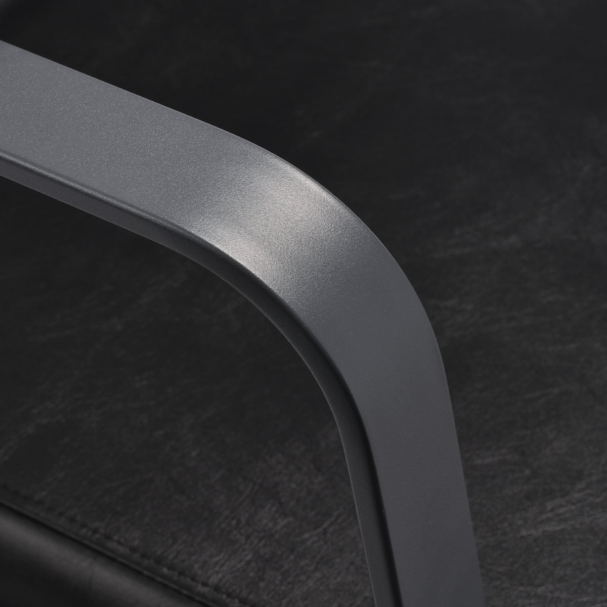Wypełnienie z trwałej, odpornej na odkształcenia pianki oraz tapicerka z przyjemnej w dotyku skóry syntetycznej zapewniają trwałość mebli i ich komfortowe użytkowanie przez długi czas. Sprawia to również, że wyposażenie jest odporne na wilgoć, trwałe i łatwe do czyszczenia. Czarna tapicerka nadaje mu niepowtarzalny charakter. Wyposażenie wyróżnia się nowoczesnym designem, dzięki czemu fotel świetnie prezentuje się w wielu profesjonalnych salonach.