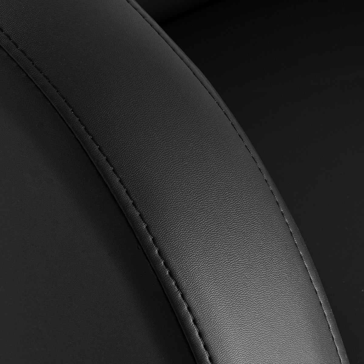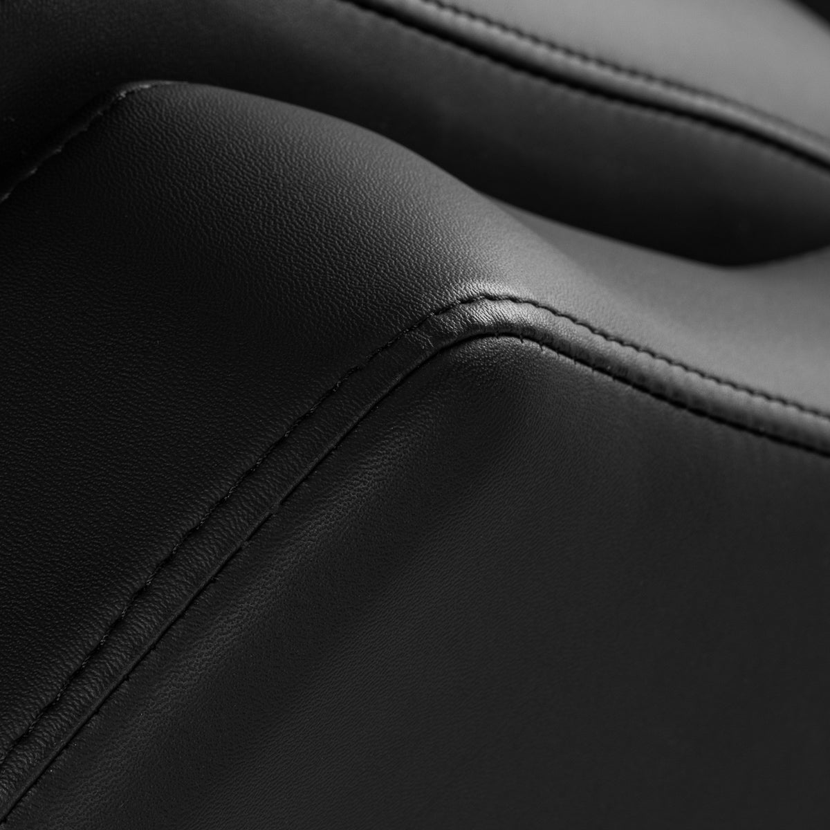 Profilowany fotel z trwałą piankową tapicerką zapewnia odpowiednie podparcie odcinka lędźwiowego, co przekłada się na wysoki komfort użytkowania. Tapicerowane podłokietniki pozwalają na prawidłowe ułożenie ramion klienta, wspierając wygodną pozycję podczas zabiegu. Miękka w dotyku skóra syntetyczna w odcieniach czerni wyróżnia się trwałością, łatwością czyszczenia oraz odpornością na wilgoć. Nowoczesna forma myjni dodaje wnętrzu charakterystycznego stylu. Zestaw zawiera pełne okucia w kolorze czarnym – baterię, słuchawkę prysznicową oraz dedykowane węże – tworząc gotowy komplet do codziennej pracy.