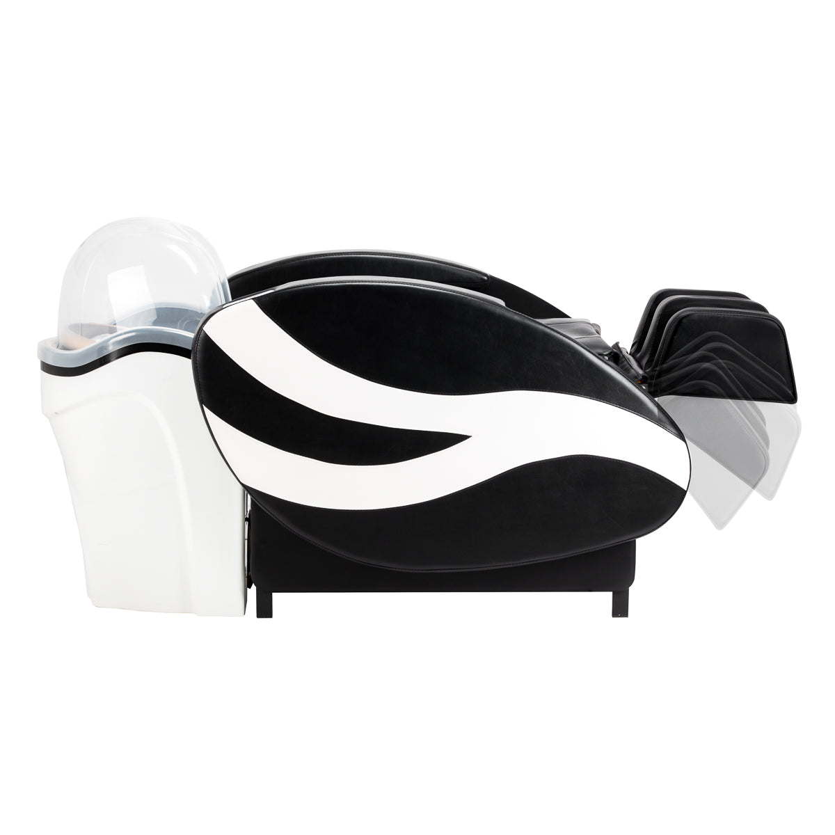 Regulowany kąt nachylenia łuku, zaprojektowany do Waterfall Head SPA, umożliwia relaksujący masaż wodny skóry głowy. Strumienie wody zapewniają naturalny masaż, poprawiając krążenie krwi, redukując napięcie i stres oraz łagodząc dolegliwości takie jak bóle głowy i sztywność karku. Inteligentny system obiegu zamkniętego pobiera wodę z misy i ponownie ją wykorzystuje, zapewniając ciągłość zabiegu i wysoki komfort. Połączenie technologii i relaksu sprzyja zdrowszym włosom oraz głębokiemu odprężeniu.
