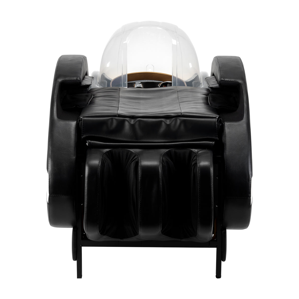 Zintegrowany, regulowany pod względem wysokości podnóżek umożliwia optymalne ułożenie nóg klienta, zwiększając jego komfort. Funkcja podnoszenia zapewnia odpowiednie podparcie łydek, sprzyjając relaksowi całego ciała i utrzymaniu ergonomicznej pozycji nawet podczas długich zabiegów. Wbudowany masaż uciskowy łydek poprawia krążenie i wzmacnia efekt relaksacyjny, a możliwość regulacji poziomu podnoszenia z panelu sterowania pozwala precyzyjnie dopasować ustawienia do indywidualnych potrzeb.