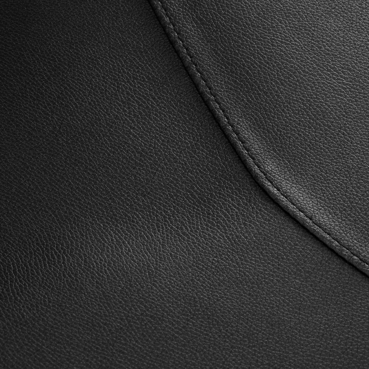 Wytrzymała konstrukcja i skóra syntetyczna w odcieniach czerni zapewniają odporność na wilgoć, solidność i trwałość. Okrągła podstawa w odcieniach czerni gwarantuje stabilność i wytrzymałość. Smukłe górne oparcie dodaje lekkości wizualnej, podkreślając nowoczesny charakter fotela, a staranne detale świadczą o wysokiej jakości wykonania. Minimalistyczna czarna kolorystyka w połączeniu z estetycznym przeszyciem sprawia, że fotel doskonale komponuje się z różnymi stylami wnętrz salonów, dodając elegancki i nowoczesny akcent.
