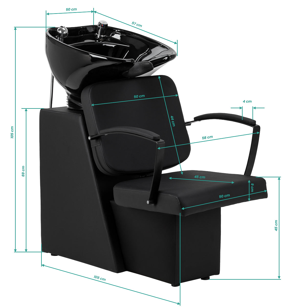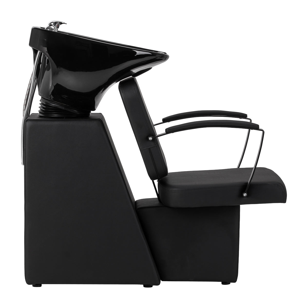 The wash unit is equipped with a mixer tap, ensuring constant access to hot and cold water and the ability to precisely adjust the temperature to the customer's needs and preferences. A practical place to put the shower head improves everyday work, and a plug with a built-in strainer allows you to control the water flow and helps maintain a high level of hygiene in the salon. The water connection located inside the base allows for aesthetic concealment of the installation. The profiled chair guarantees comfort during a variety of treatments, and the combination of functional solutions and practical amenities translates into even greater convenience when working in a hairdressing salon.