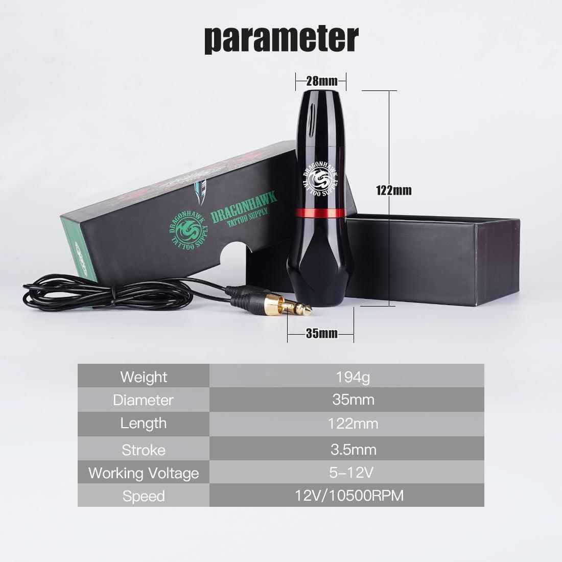Mast Atom Tattoo Pen posiada regulowaną głębokość igły od 0 do 4,5 mm oraz długość skoku 3,5 mm, dając artystom pełną kontrolę nad każdym detalem. Kompatybilny ze wszystkimi kartridżami z igłami, ten sprzęt zapewnia bezproblemowe i płynne doświadczenie tatuażu.