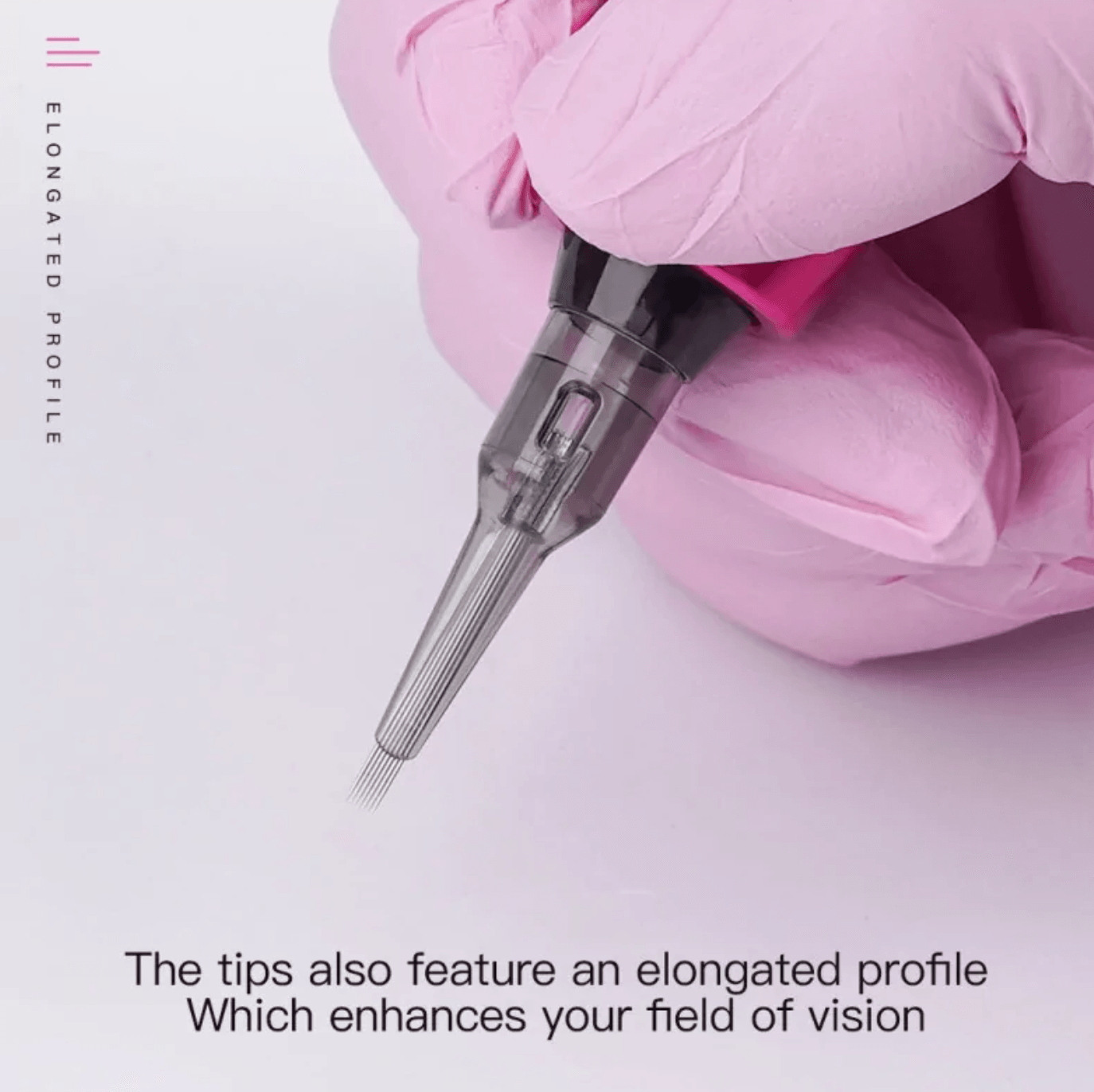 Wyjątkowa wydajność Mast Cartridges Round Liner SMP, specjalnie zaprojektowanych do zastosowań w makijażu permanentnym. Te kartridże posiadają dłuższe i cieńsze igły, które zapewniają wyjątkową precyzję i gładkość linii, co czyni je idealnymi do skomplikowanych detali i precyzyjnej pracy.