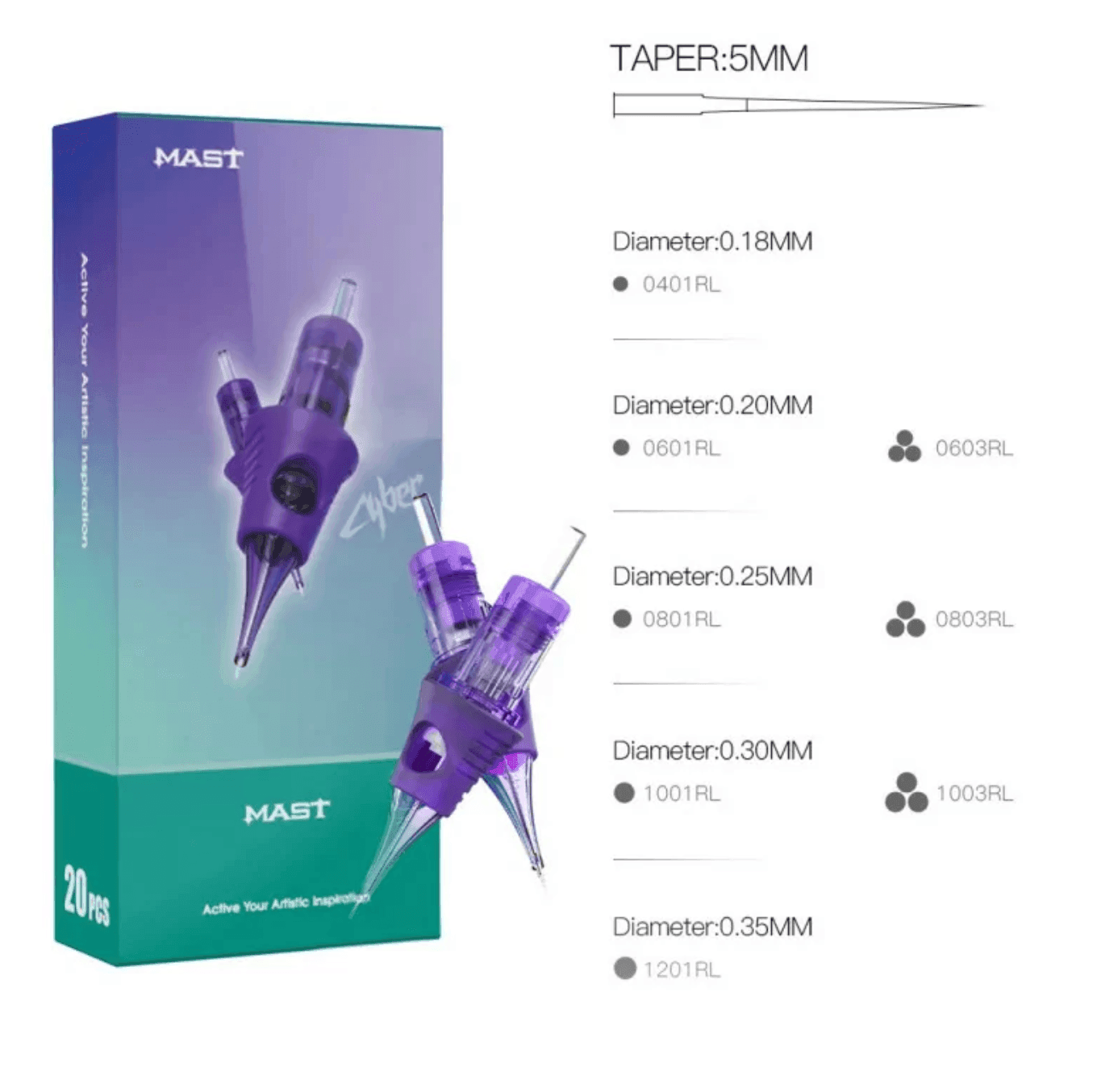 - Smukły i lekki design: Kartridże Mast Cyber cechuje smuklejszy, lżejszy design, który zapewnia niespotykany poziom komfortu i kontroli podczas zabiegów. Ten projekt gwarantuje, że artyści mogą pracować z łatwością, poprawiając swoją ogólną wydajność.