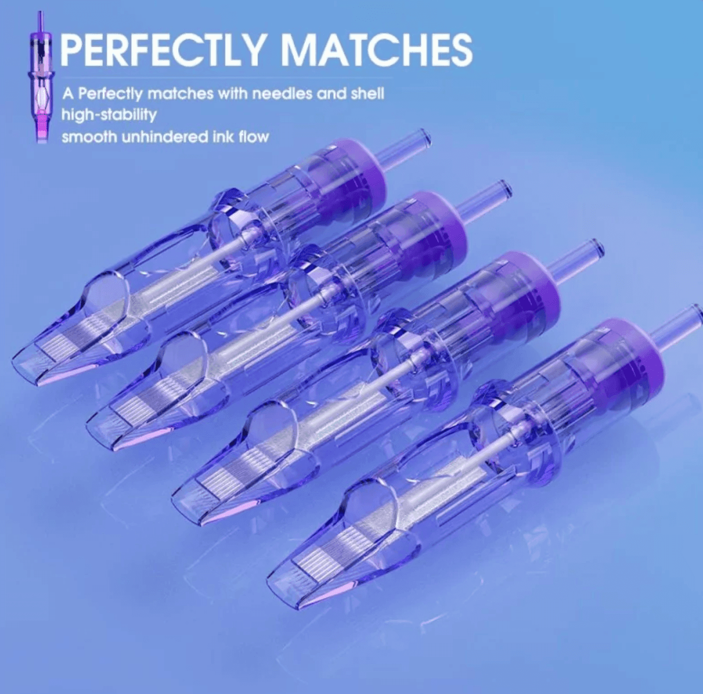- Idealne dopasowanie i stabilność: Kartridże są idealnie dopasowane do swoich igieł, zapewniając wysoką stabilność i umożliwiając płynny, niezakłócony przepływ tuszu. Ten projekt minimalizuje wszelkie zakłócenia podczas tatuowania, poprawiając ogólne doświadczenie.