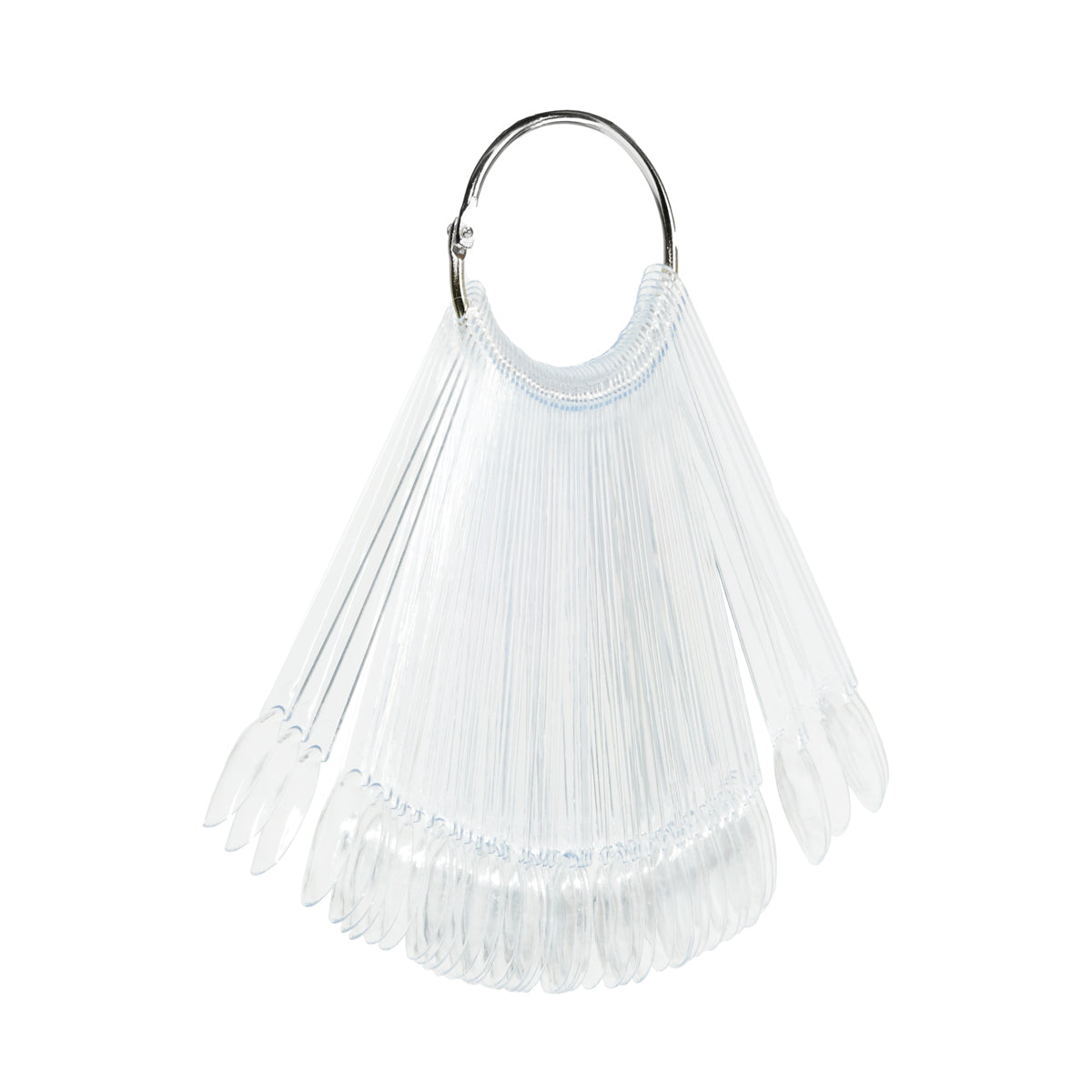 Przezroczysta próbka umożliwia estetyczną prezentację wszystkich kolorów klasycznych i hybrydowych lakierów lub żeli. Składa się z 50 pojedynczych tipsów o owalnym kształcie i rozmiarze odpowiadającym prawdziwym paznokciom. Jest przymocowana praktycznym, odpinanym kołem, co sprawia, że łatwo przechować całość. Każdy tips wykonany jest z trwałego plastiku.