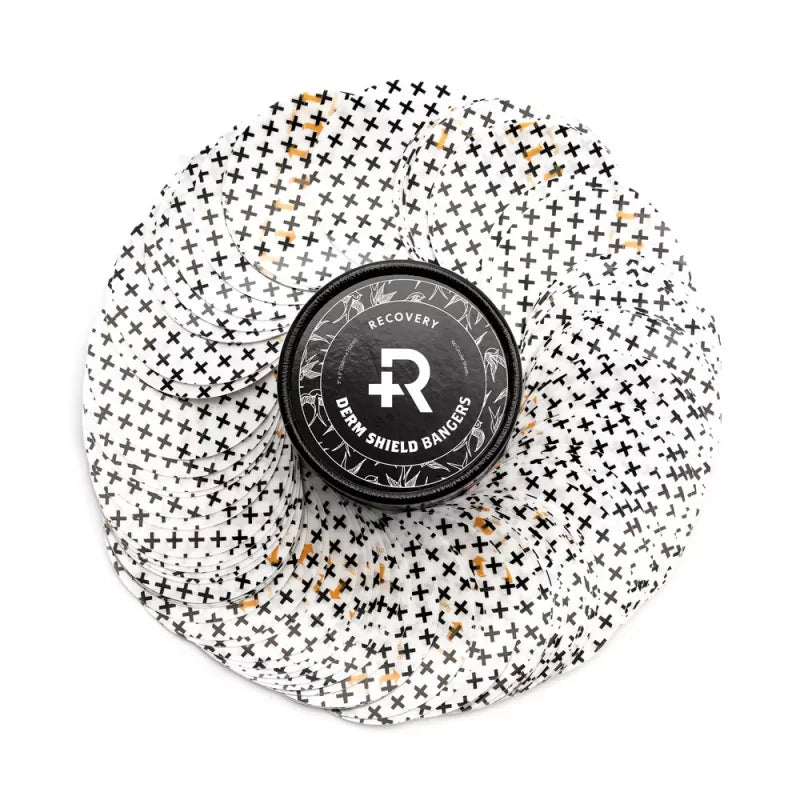 Recovery Derm Shield Bangers to profesjonalne okrągłe plastry z folii do tatuażu zaprojektowane specjalnie do ochrony i gojenia małych tatuaży, tatuaży flash oraz precyzyjnych detali. Każdy wycięty plaster ma rozmiar 7,6 × 7,6 cm (3” × 3”), zapewniając precyzyjne i wygodne pokrycie wybranych obszarów.